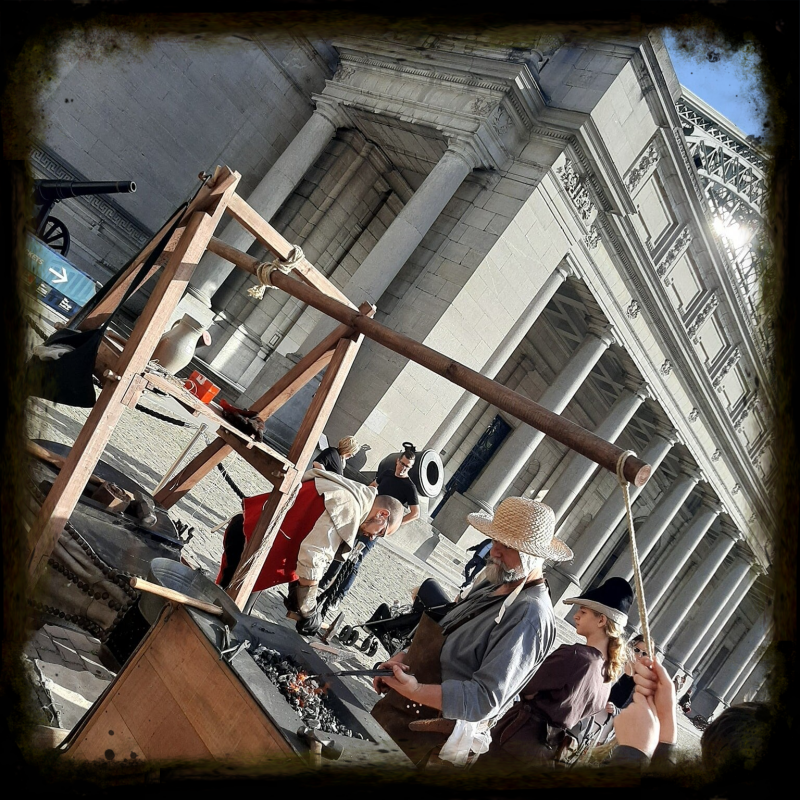onder begeleiding van de smid Vervaardigen ze een leuk aandenken om mee te nemen naar huis.
